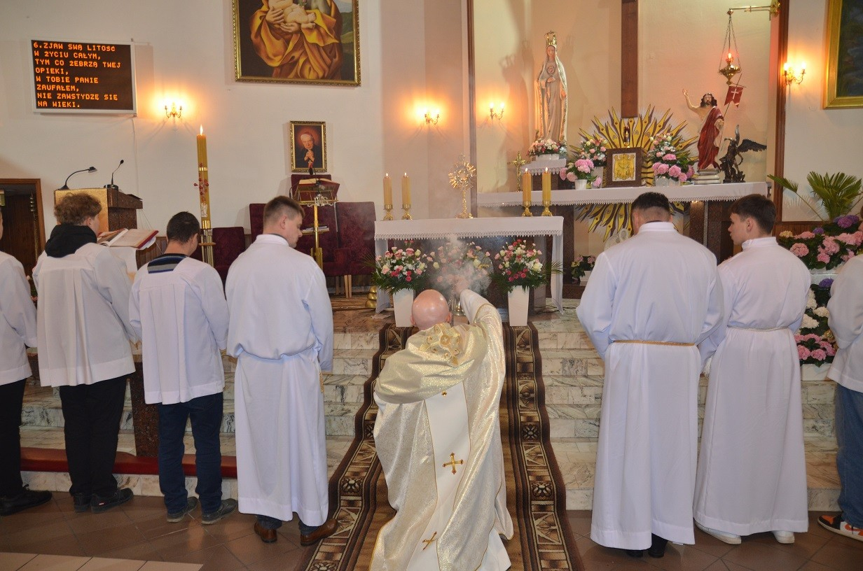 Dziękuję wszystkim zaangażowanym w przygotowanie do tak wyniosłej uroczystości. Serdeczne Bóg zapłać dla Pani Marii, Pana Jurka, Pana Mateusza, dla wszystkich panów lektorów i Pani Ani, Joasi, wszystkim ministrantom, strażakom, naszej asyście i wszystkim tym, którzy nie szczędzili czasu aby wszystko było przygotowane i dopracowane w każdym szczególe. Dziękuje szanowni parafianie i goście za uczestnictwo. Bóg zapłać dla wszystkich.